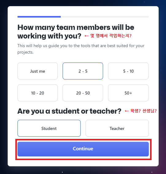Welcome to Githumb 글씨와 함께 간단한 설문조사가 시작되는데 그냥 대충 선택해도 상관 없다.